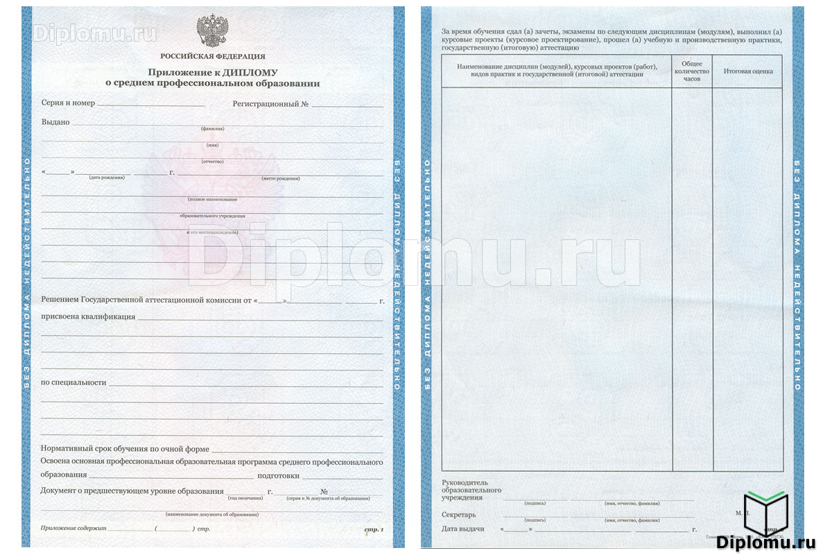 Приложение к диплому ССУЗа 2014-2026 годов при покупке отдельно; |