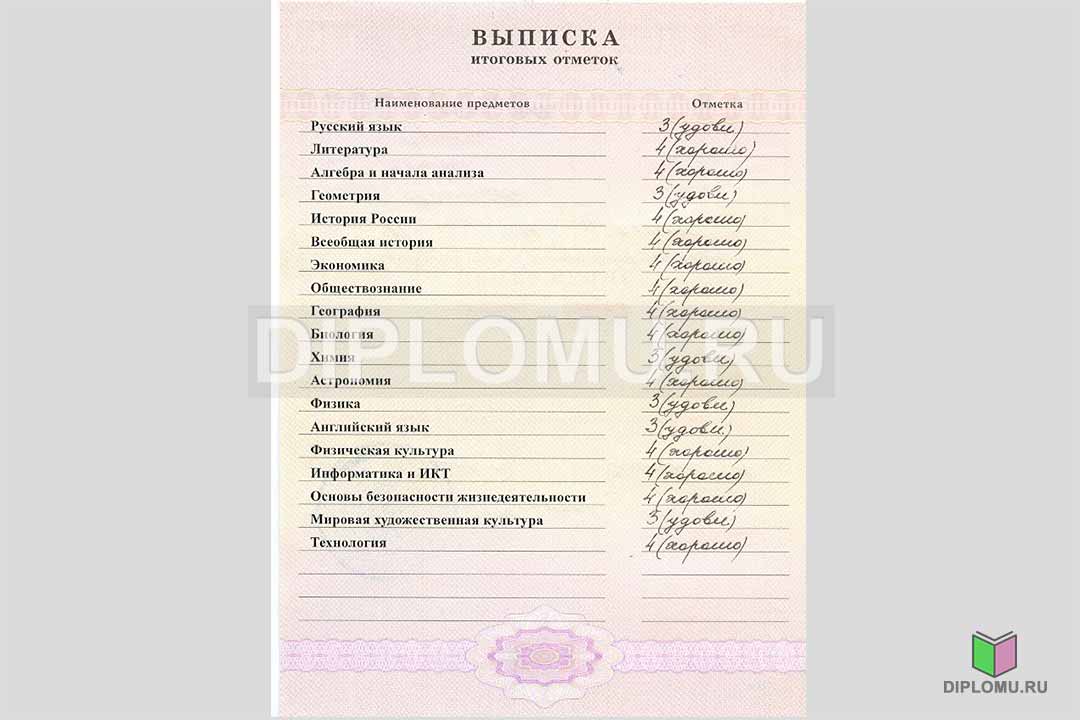 Купить аттестат 2007-2009 года